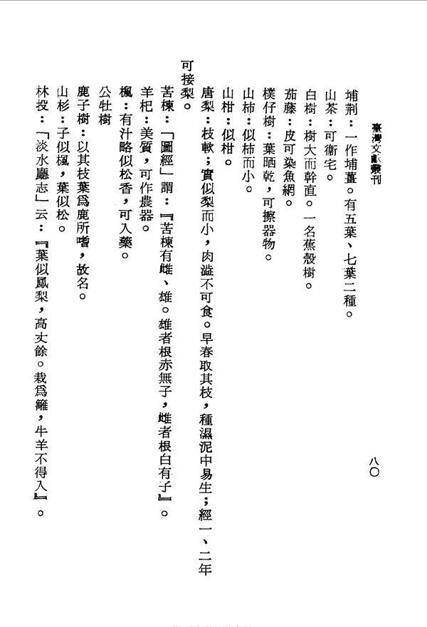 楓可入藥 苗栗縣志卷五 台灣文獻史料叢刊 -