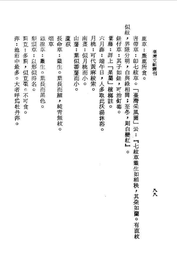 仙草能解暑毒 苗栗縣志卷五 台灣文獻史料叢刊 -