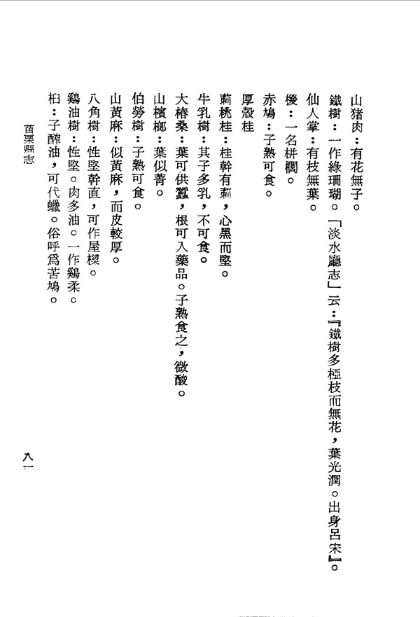 大椿桑根可入藥品 苗栗縣志卷五 台灣文獻史料叢刊 -