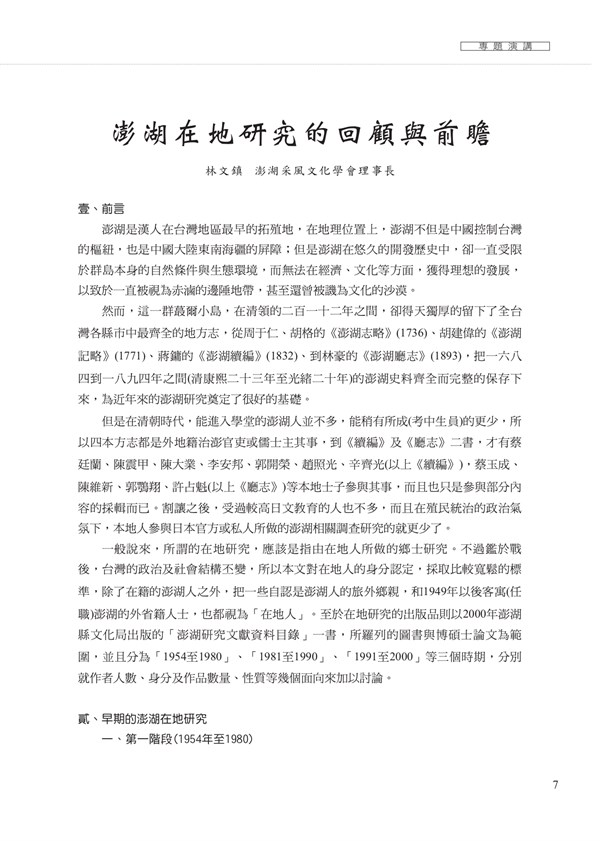 《澎湖研究學術研討會論文輯》第一屆〈澎湖在地研究的回顧與前瞻〉 -