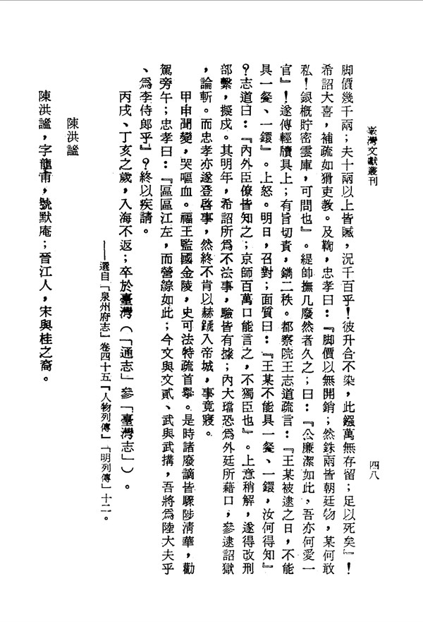 裴震忠得了血疾 泉州府志選錄 台灣文獻史料叢刊 -