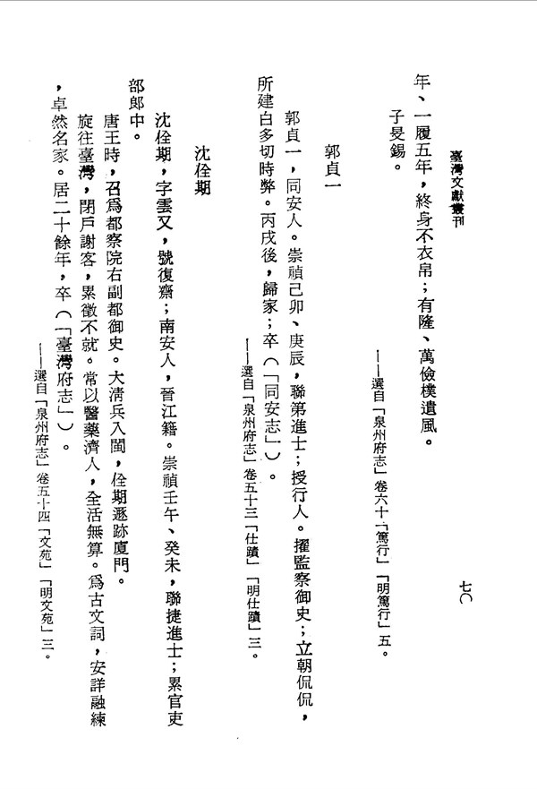 沈佺期常以醫藥救人 泉州府志選錄 台灣文獻史料叢刊 -