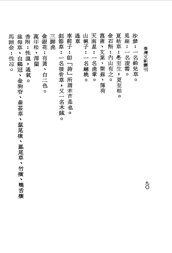金鎖匙、荊芥能去風 苗栗縣志卷五 台灣文獻史料叢刊