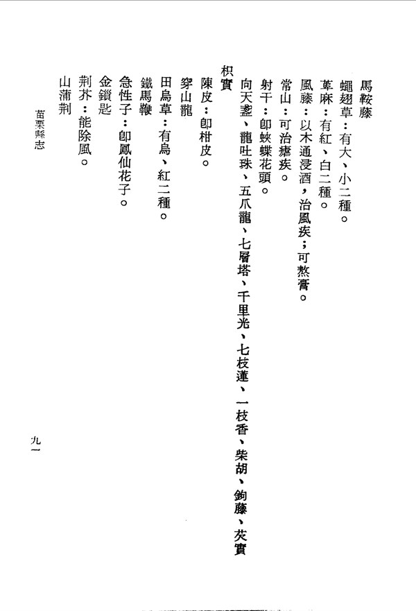 風藤可治風疾 苗栗縣志卷五 台灣文獻史料叢刊 -