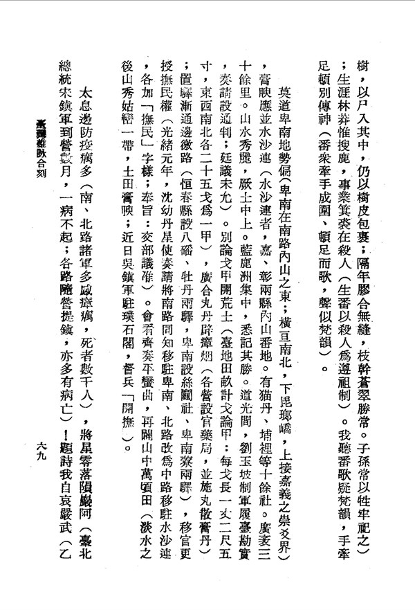 臺地田畝計戈論甲,設官藥局施丸散膏丹 臺灣雜詠合刻 台灣文獻史料叢刊 -