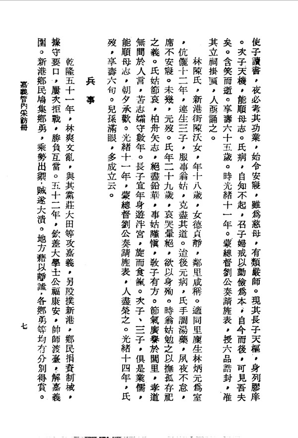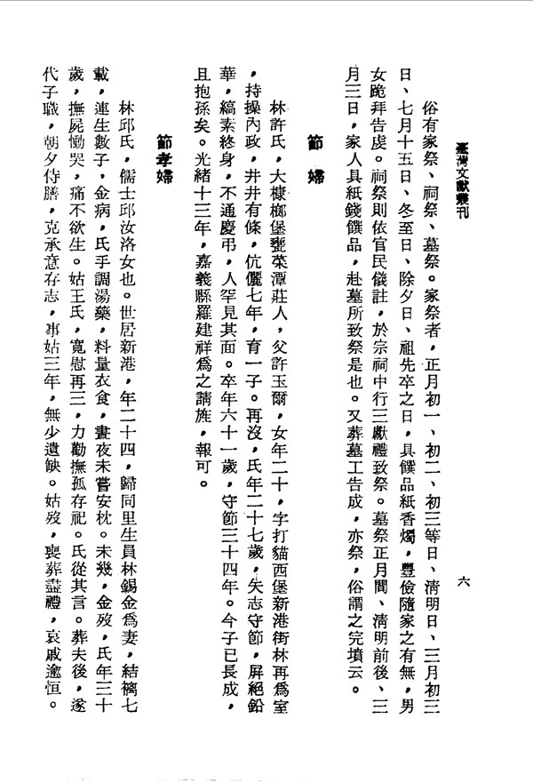 林陳氏服事翁姑,克盡其道 嘉義管內采訪冊打貓西堡 台灣文獻史料叢刊 -