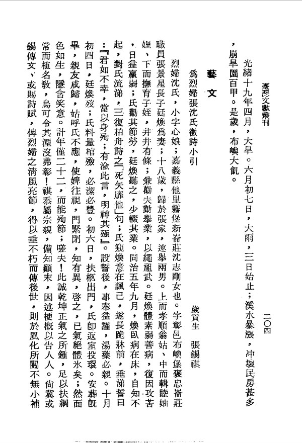 烈婦沈氏孝親撫子井井有條,夫病湯藥必親 雲林縣采訪冊 台灣文獻史料叢刊 -