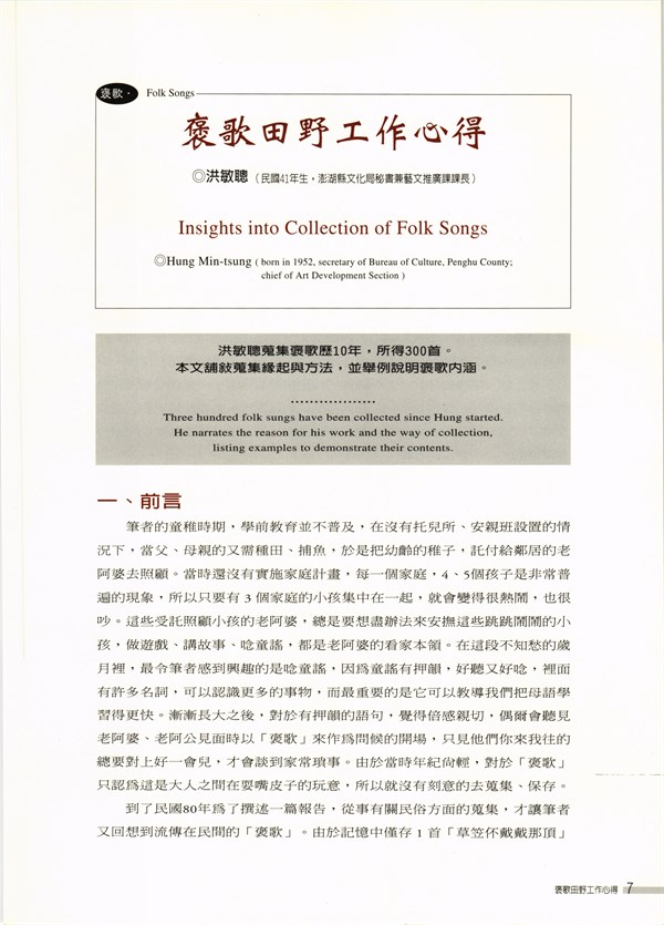 《硓古石》季刊第23期〈褒歌田野工作心得〉 -