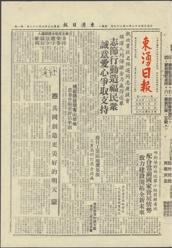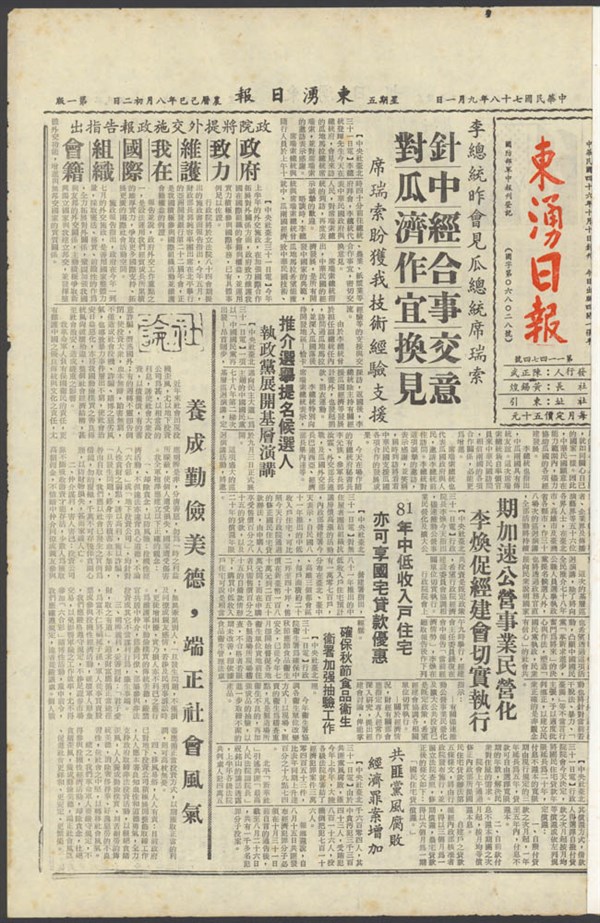 中華民國78年8月29日東湧日報第一一四七一期第一版 -