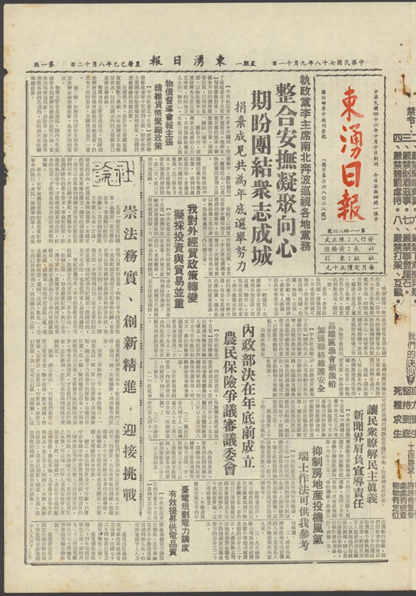 中華民國78年9月11日東湧日報第一一四八四期第一版 -