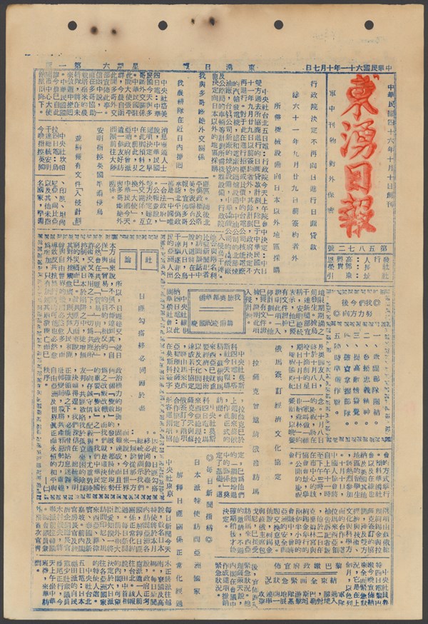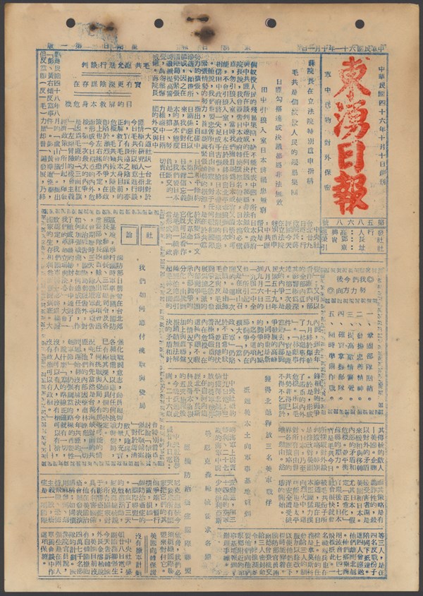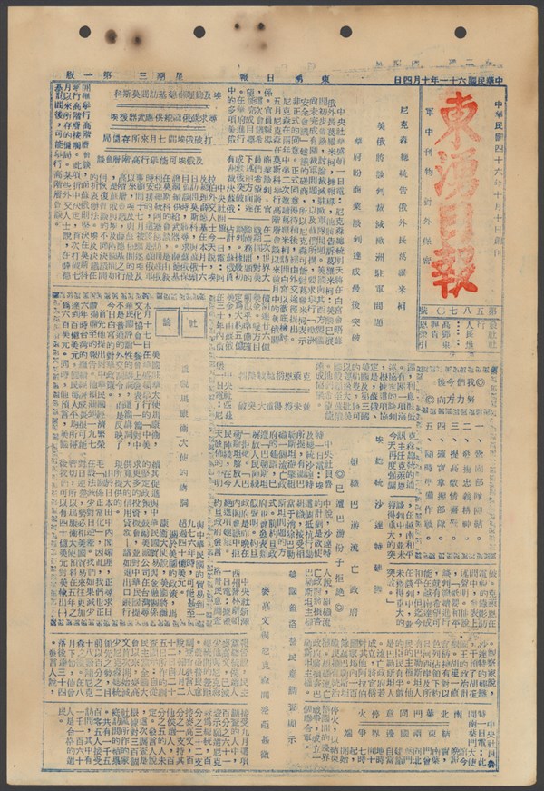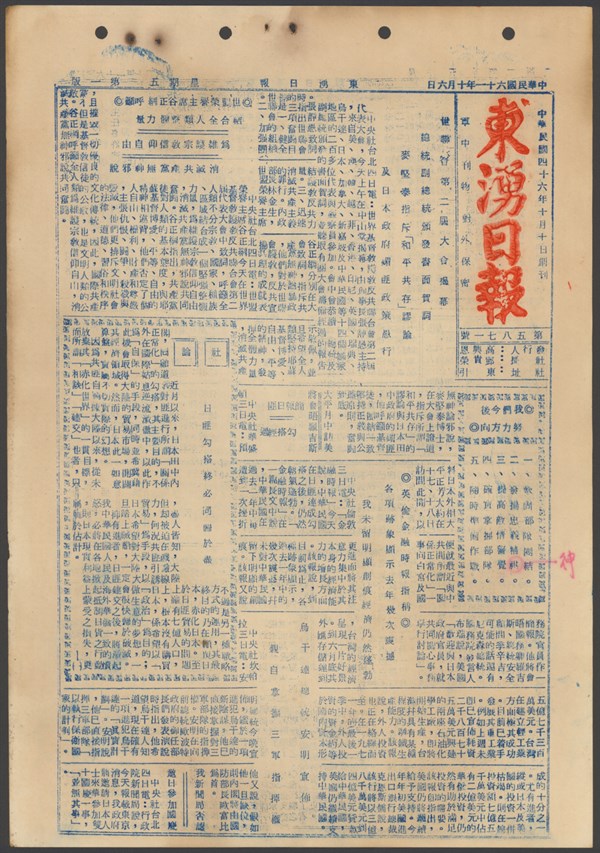 中華民國61年10月1日東湧日報第五八六八期第一版 -