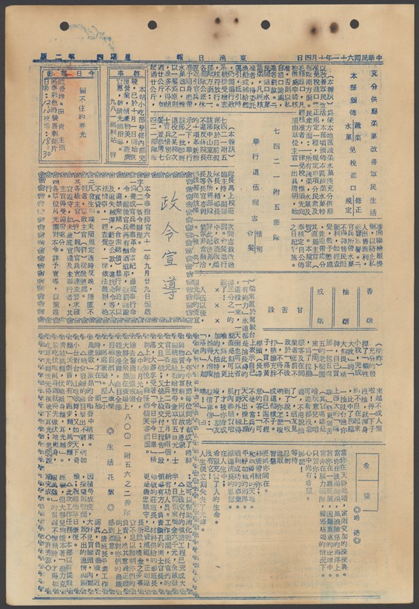 中華民國61年10月1日東湧日報第五八六八期第二版 -
