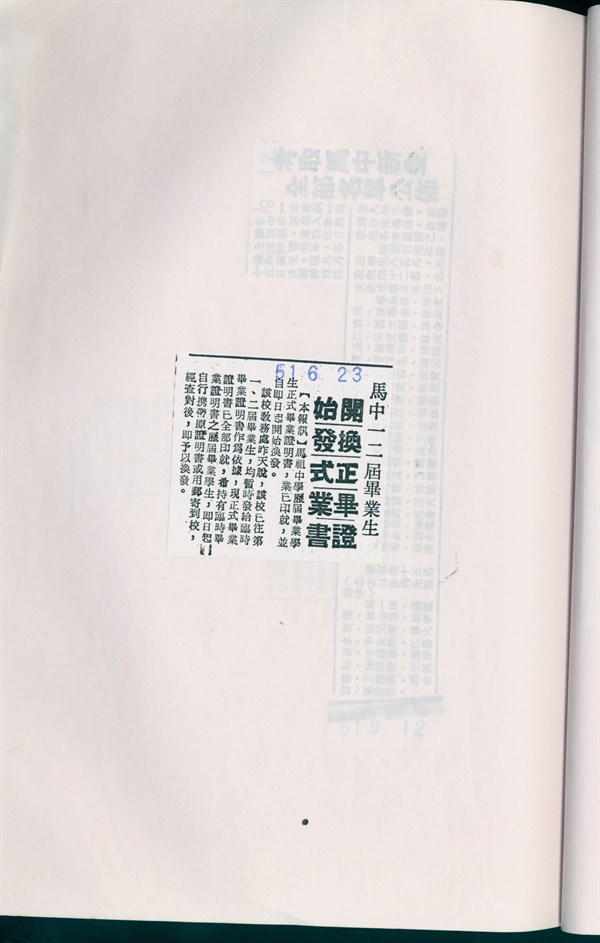 民國51年馬祖中學正式畢業證明書開始換發-馬祖中學新聞集錦 -