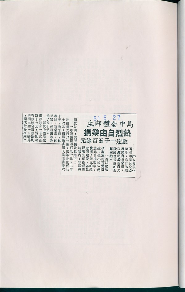 民國51年馬祖中學為救難同胞展開自由樂捐行動-馬祖中學新聞集錦 -