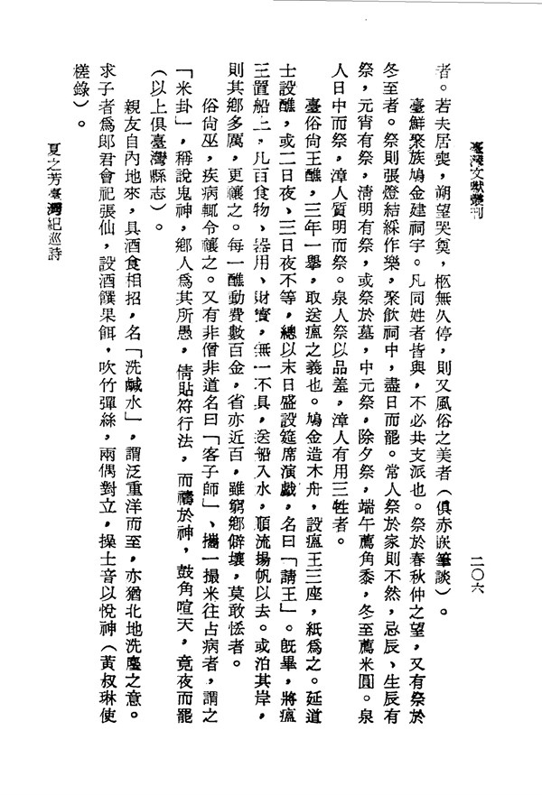 臺俗尚王醮,取送瘟之義也,其鄉多厲更禳之 福建通志臺灣府 台灣文獻史料叢刊