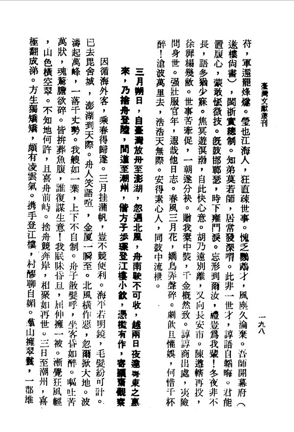 北風使得船的坐客昏如喝醉,嘔吐萬狀且驚膽萬分 中復堂選集目錄後湘二集卷一 台灣文獻史料叢刊 -