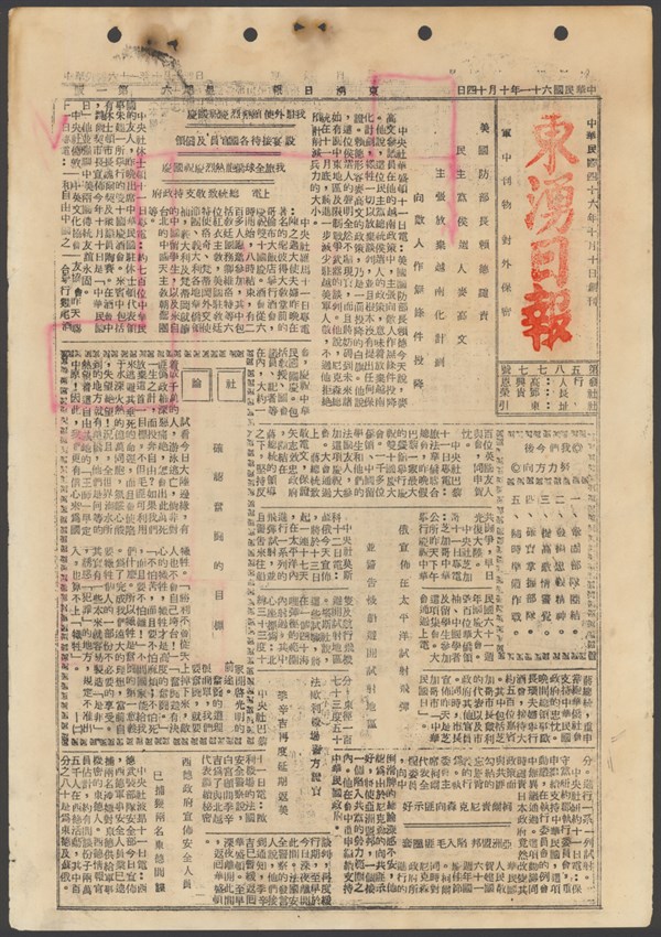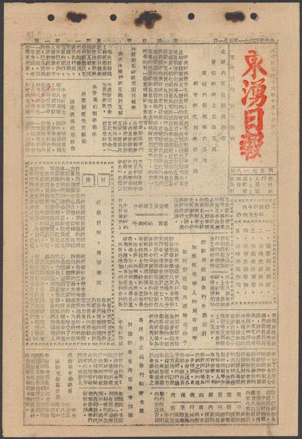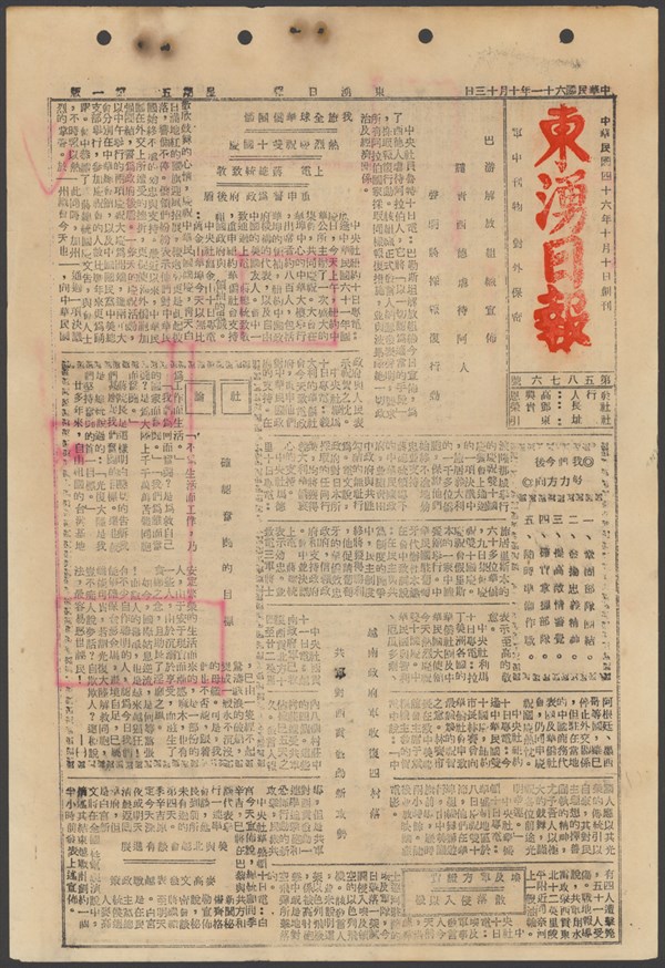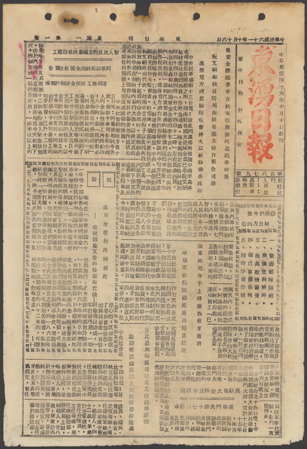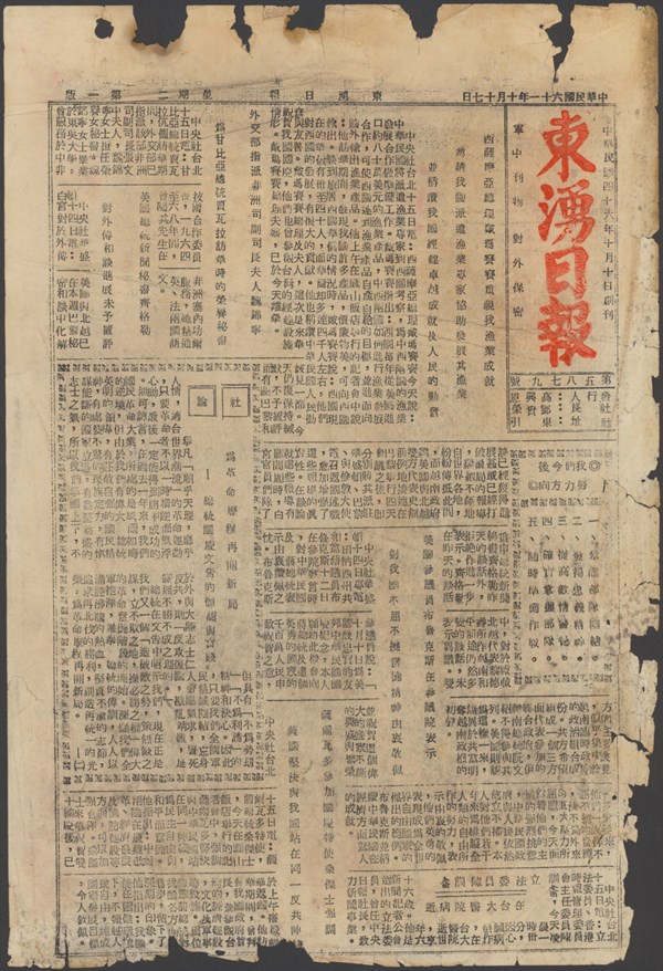 中華民國61年10月16日東湧日報第五八七九期第一版 -