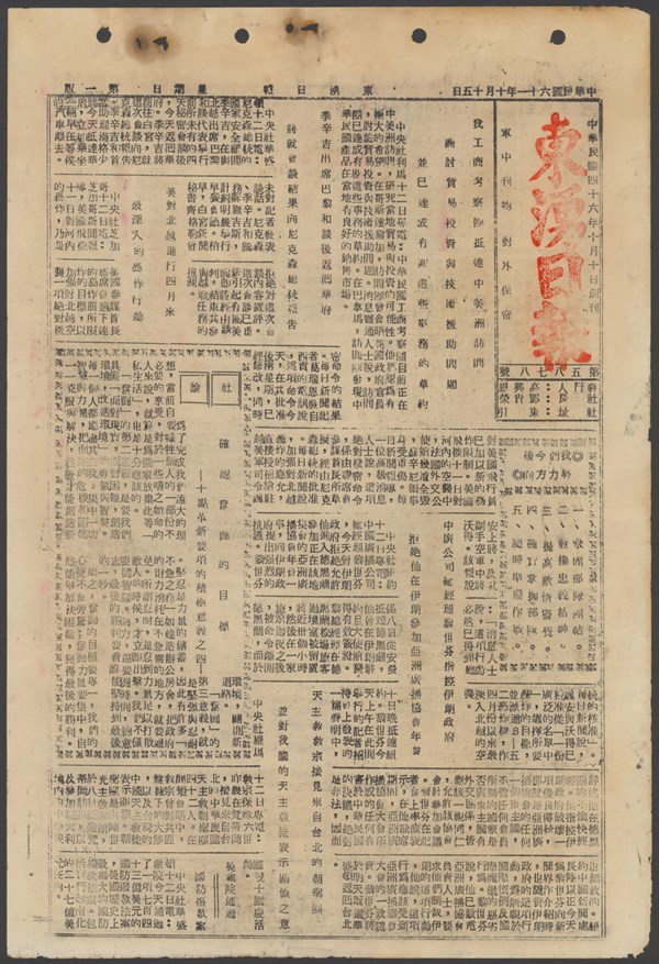 中華民國61年10月13日東湧日報第五八七六期第一版 -