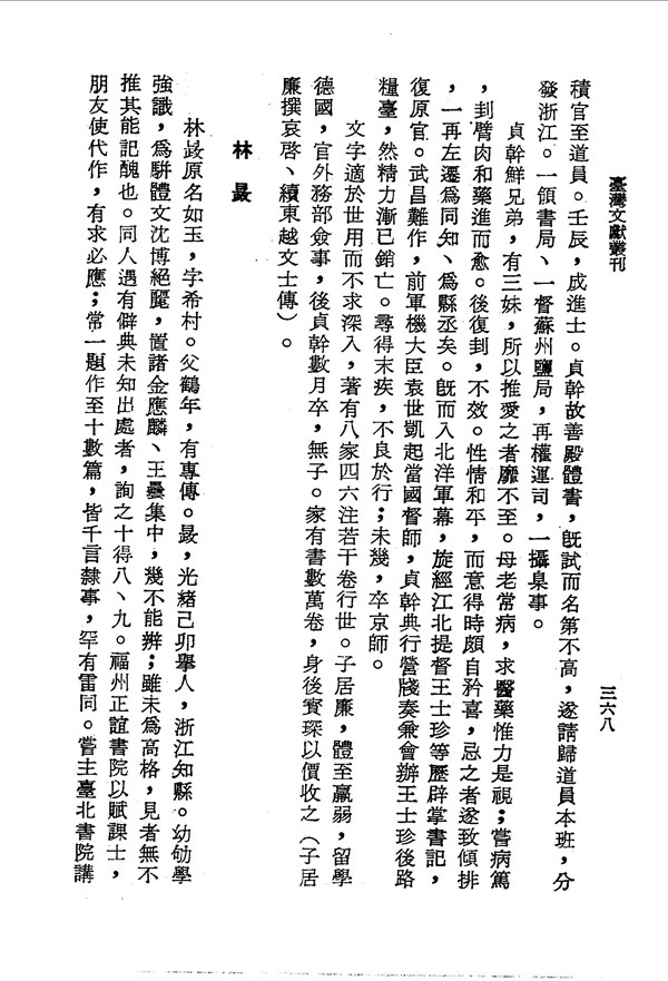 劉家謀肺部感染疾病 福建通志列傳選卷六 台灣文獻史料叢刊 -