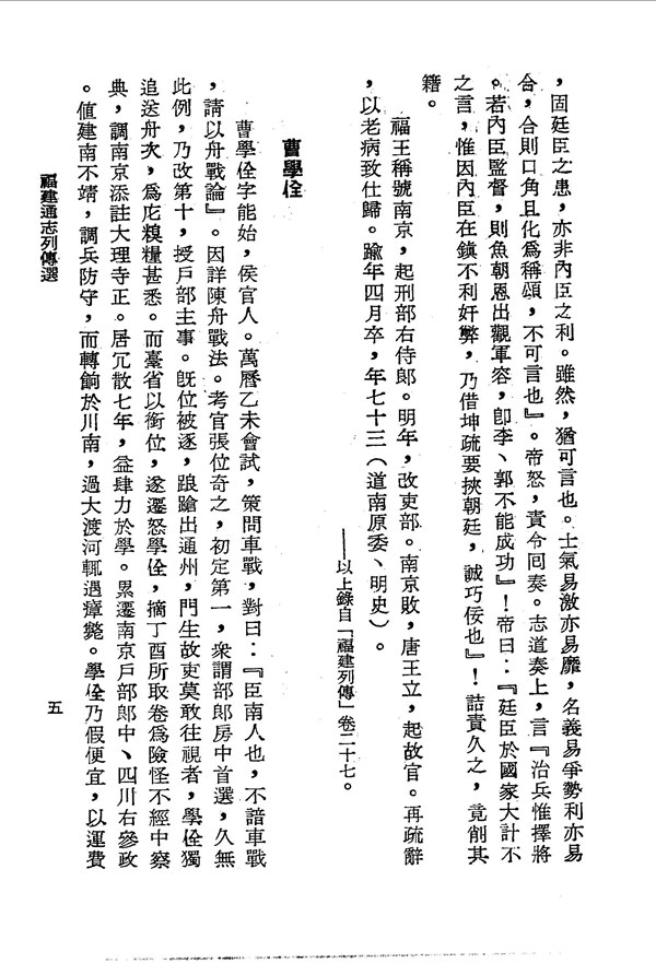 士兵渡河時因瘴氣而患病 福建通志列傳選卷一 台灣文獻史料叢刊 -