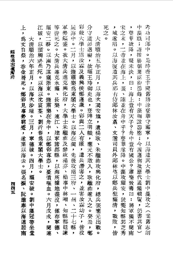 錢肅樂在舟中憂憤嘔血,而後以頭觸床而死 福建通志臺灣府 台灣文獻史料叢刊 -
