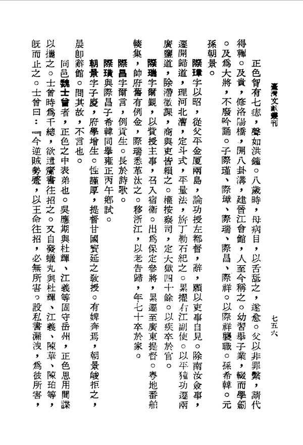 黃正色八歲時,母親犯眼病,便用舌為之舔舐後痊癒 福建通志臺灣府 台灣文獻史料叢刊
