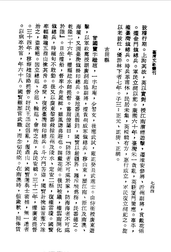 甘國寶樂善好施,施棺贈藥不倦 福建通志臺灣府 台灣文獻史料叢刊 -