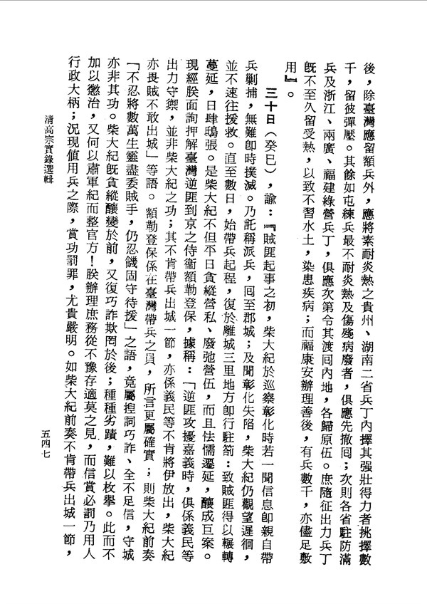 士兵不習慣台灣濕熱天氣而紛紛患病 清高宗實錄選輯選輯(三) 台灣文獻史料叢刊 -