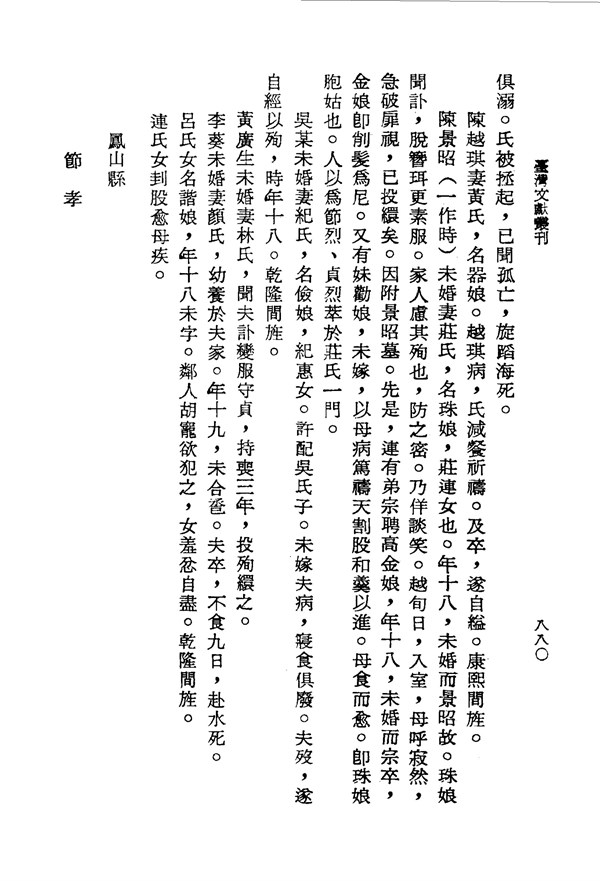 辜純湯之妻林氏事姑孝,姑病割股和藥,籲天減算以益姑壽 福建通志臺灣府 台灣文獻史料叢刊 -