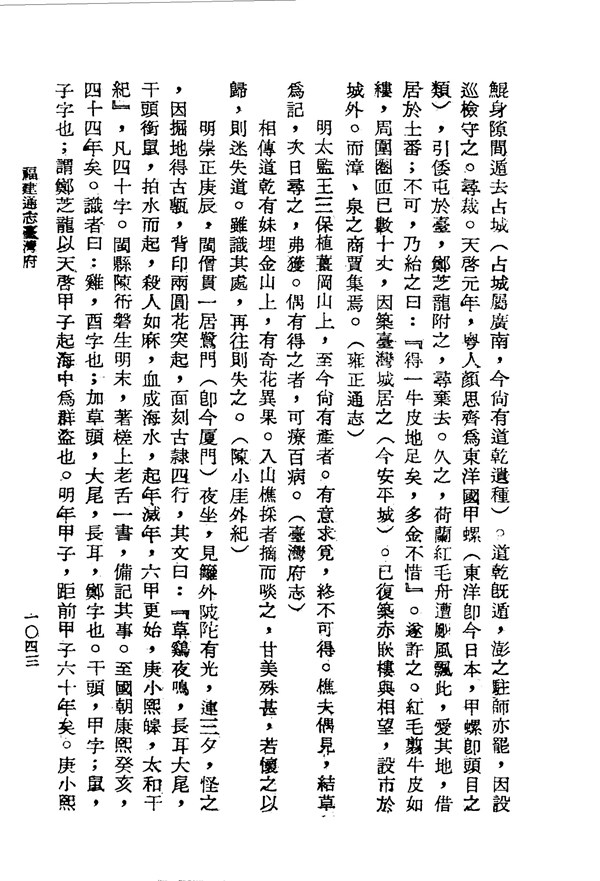 明太監王三保植薑岡山上,可以治療許多疾病 福建通志臺灣府 台灣文獻史料叢刊 -