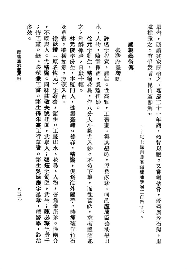 吳廷慶醫術精湛,治療效果好 福建通志臺灣府 台灣文獻史料叢刊 -