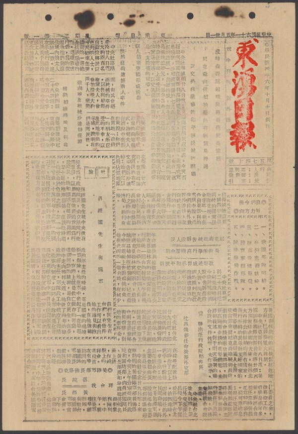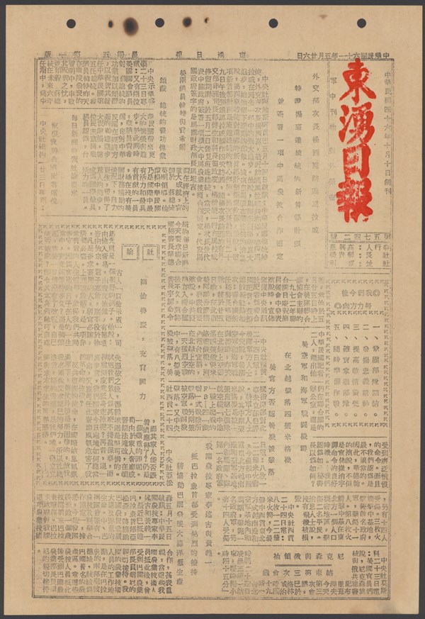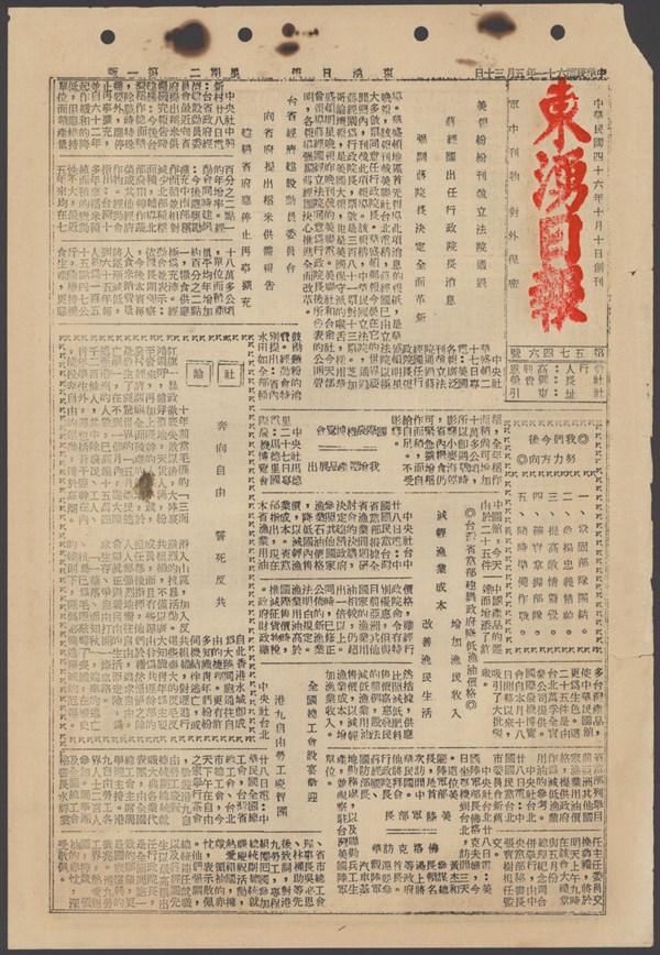 中華民國61年5月30日東湧日報第五七四六期第一版 -