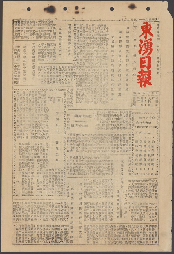 中華民國61年5月31日東湧日報第五七四七期第一版