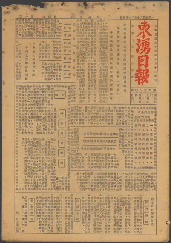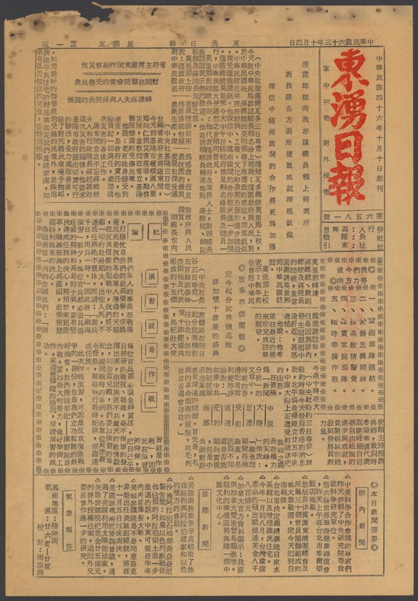 中華民國63年10月4日東湧日報第六五八一期第一版 -