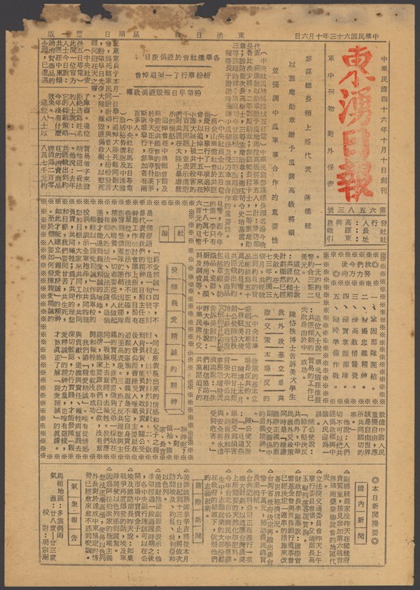 中華民國63年10月1日東湧日報第六五七八期第一版 -