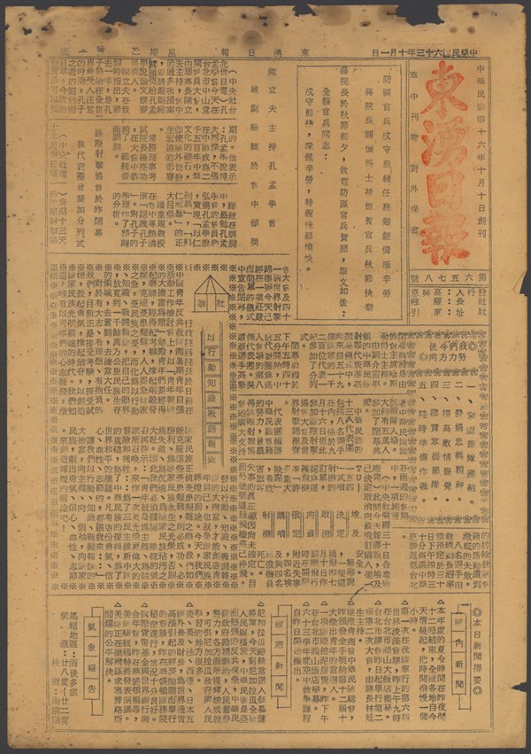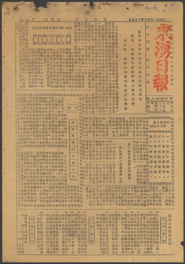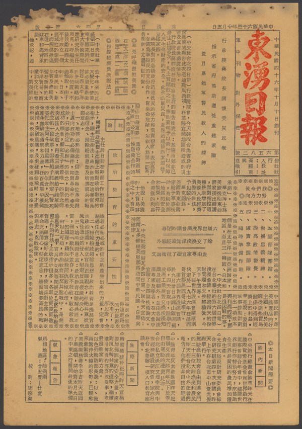 中華民國63年10月2日東湧日報第六五七九期第一版 -