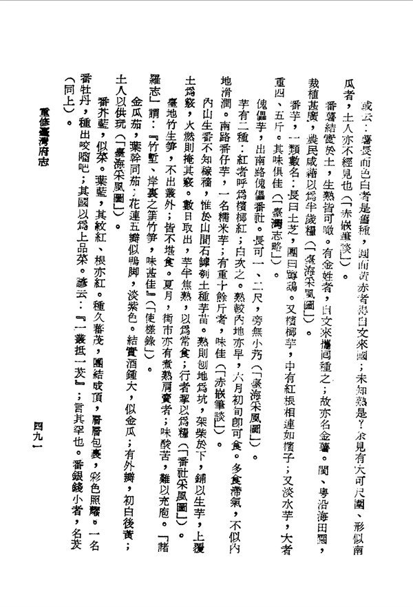 芋有兩種,多食滯氣,南路番仔芋,又名糯米芋 重修臺灣府志卷十七 台灣文獻史料叢刊 -