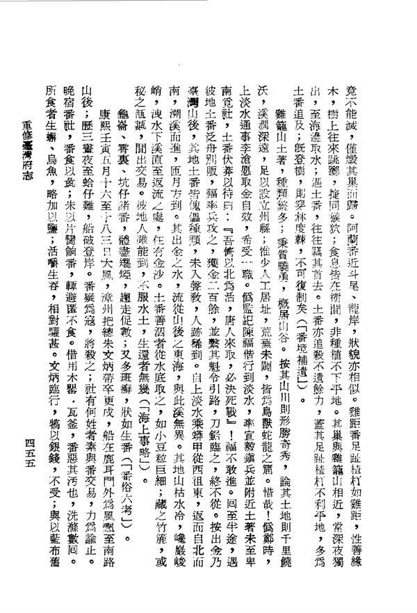 茶出水沙連社,可療暑疾 重修臺灣府志卷十七 台灣文獻史料叢刊