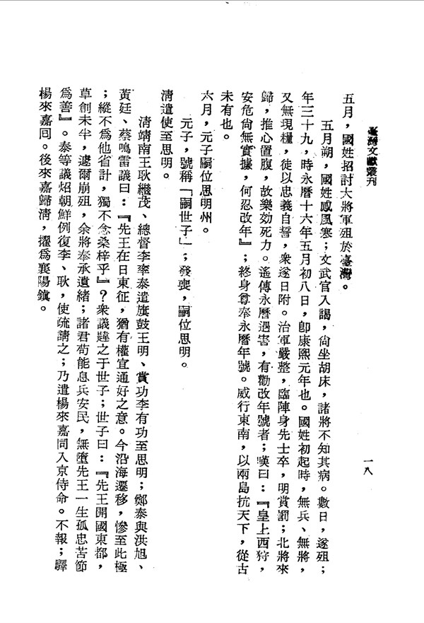 國姓爺染風寒而亡 閩海紀略 台灣文獻史料叢刊 -