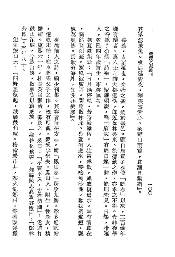 鳳山卓夢采精醫術 臺灣詩乘卷二 台灣文獻史料叢刊 -