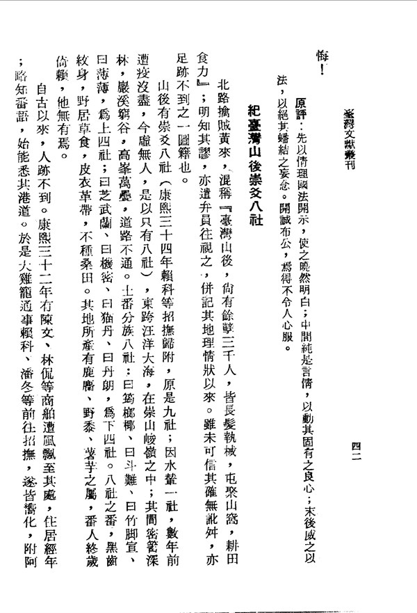 台灣山後崇爻八社 東征集卷六 台灣文獻史料叢刊 -