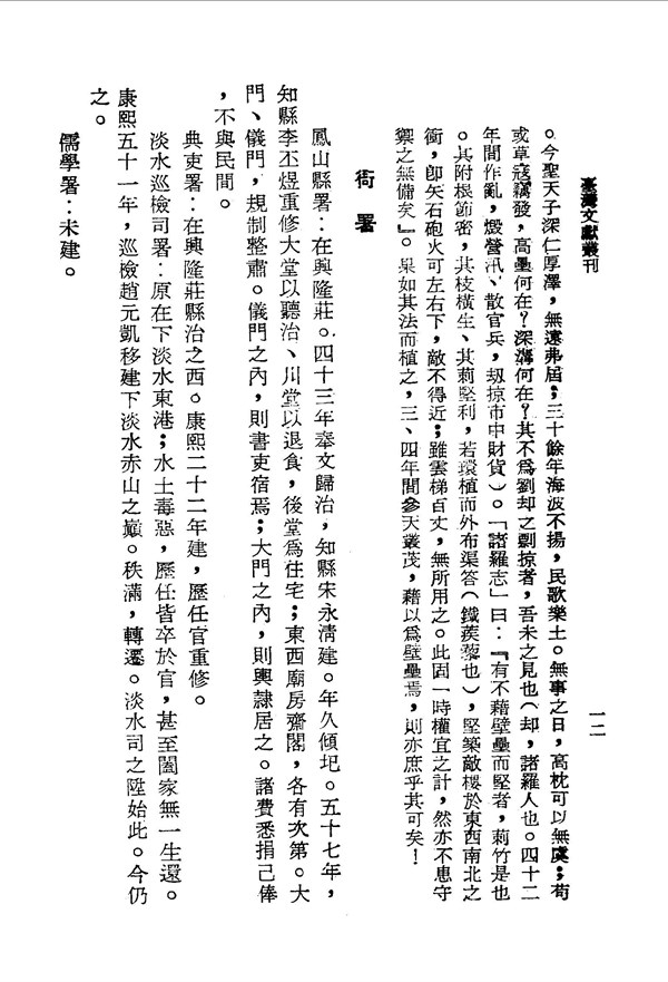 淡水巡檢司署因水土險惡,歷任官員皆死於任內 鳳山縣志卷之二 台灣文獻史料叢刊 -