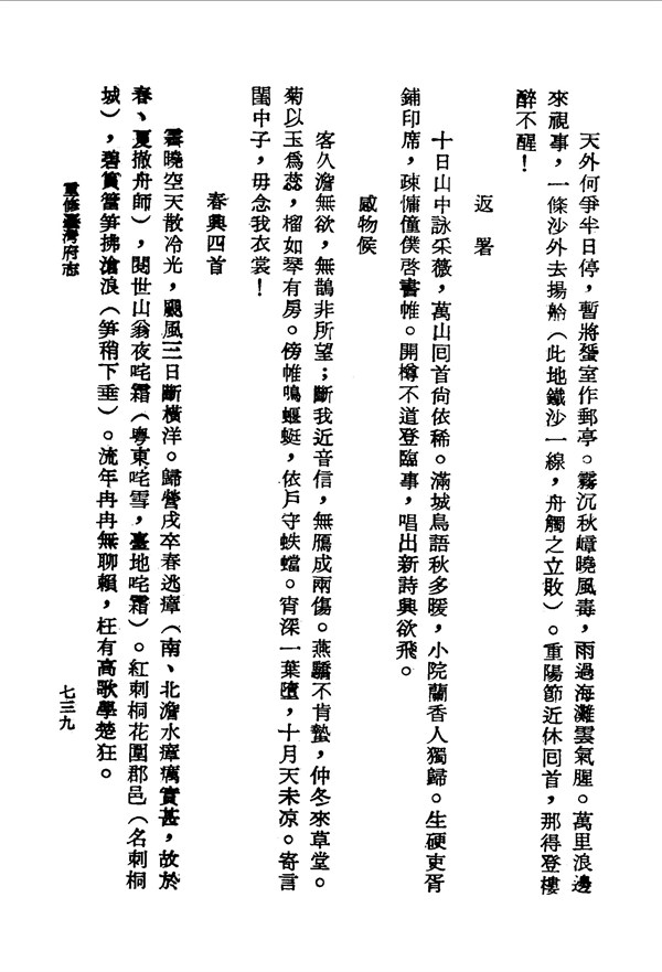 南、北淡水瘴癘甚重,故外地士兵在春夏時會撤營 重修臺灣府志卷二十四 台灣文獻史料叢刊 -
