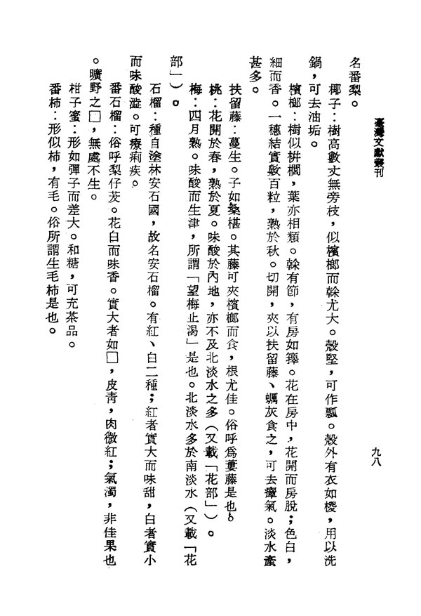 梅,味酸而生津 鳳山縣志卷之七 台灣文獻史料叢刊