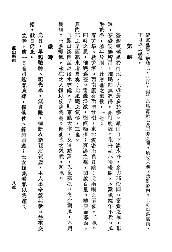鳳山溪南的環境險惡,瘴氣嚴重 鳳山縣志卷之七 台灣文獻史料叢刊 -