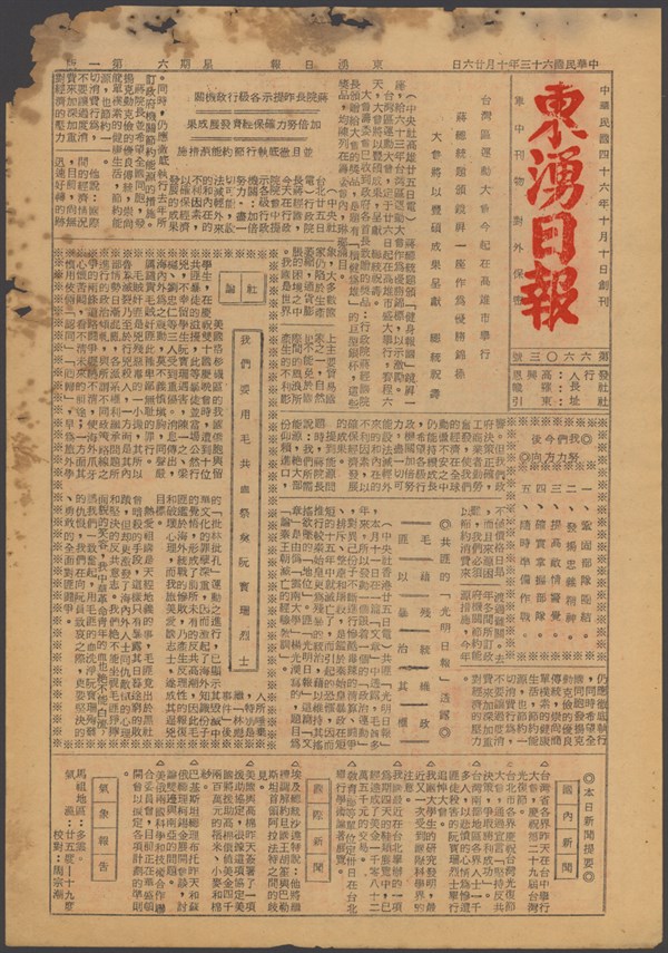 中華民國63年10月25日東湧日報第六六○二期第一版 -