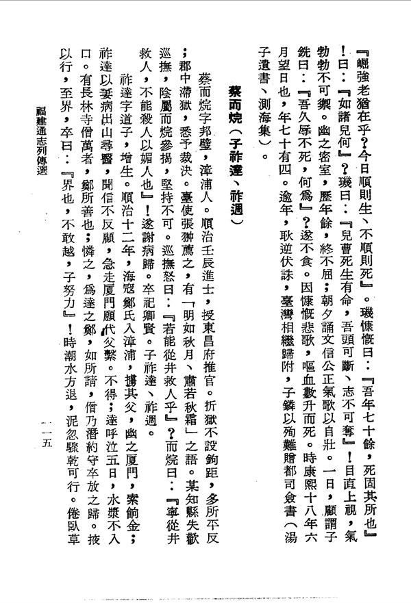 顧絕食而吐血身亡 福建通志列傳選卷二 台灣文獻史料叢刊 -
