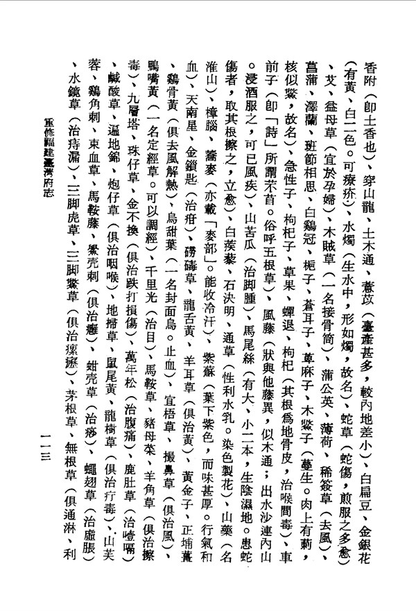 蠅翅草可治虛脹 重修臺灣府志卷十八 台灣文獻史料叢刊 -