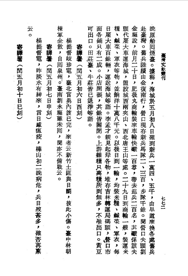 士兵感染瘟疫,死亡甚多,樺山病危 李文忠公選集第五冊 台灣文獻史料叢刊 -