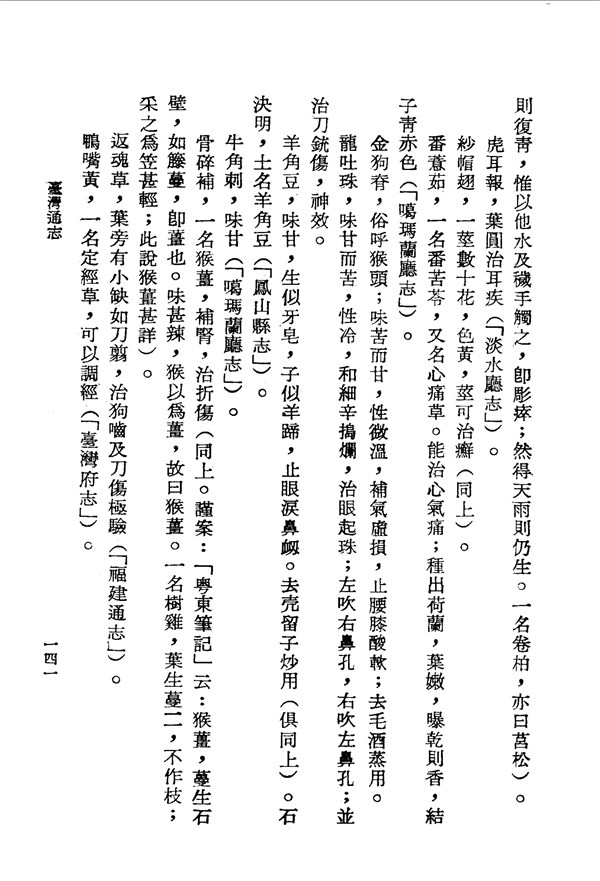 虎耳報治耳疾 臺灣通志 台灣文獻史料叢刊 -